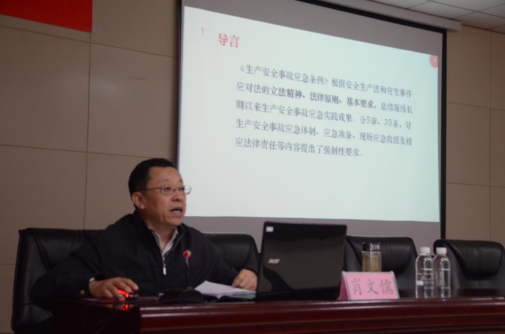 在授課過程中,肖文儒從立法工作歷程、出臺背景和目的、立法依據(jù)、調(diào)整范圍、主要制度規(guī)定、法律責(zé)任、附則等7個方面,結(jié)合事故救援經(jīng)驗和親身經(jīng)歷,以高度的政治站位旁征博引、深入淺出的對《生產(chǎn)安全事故應(yīng)急條例》進(jìn)行了全方位的解讀。他強(qiáng)調(diào),《生產(chǎn)安全事故應(yīng)急條例》是貫徹落實黨中央國務(wù)院決策部署,適應(yīng)生產(chǎn)安全事故應(yīng)急工作形勢,完善生產(chǎn)安全事故應(yīng)急工作法規(guī)體系和規(guī)范生產(chǎn)安全事故應(yīng)急工作,提升生產(chǎn)安全事故應(yīng)急能力的需要,是根據(jù)《安全生產(chǎn)法》和《突發(fā)事件應(yīng)對法》立法精神、法律原則、基本要求,總結(jié)凝練長期以來生產(chǎn)安全事故應(yīng)急實踐成果,開啟了安全生產(chǎn)應(yīng)急管理法制建設(shè)的新征程,為急管理工作提供了法律支撐和法規(guī)遵循,推動安全生產(chǎn)應(yīng)急管理工作真正走上法治化、規(guī)范化、制度化。肖文儒指出,黨和國家高度重視礦山救援建設(shè),我國礦山應(yīng)急救援隊伍具有建設(shè)起點高,實戰(zhàn)經(jīng)驗豐富,救援裝備配備先進(jìn)等優(yōu)勢,鼓勵參加培訓(xùn)的指戰(zhàn)員立足崗位實際,苦練業(yè)務(wù)技能,認(rèn)真履行職責(zé),切實為維護(hù)企業(yè)安全發(fā)展和保障人民群眾生命財產(chǎn)安全作出更大貢獻(xiàn)。