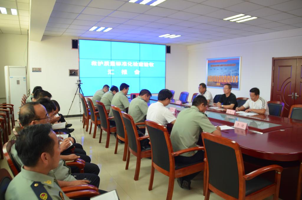 檢查組一行到隊(duì)后,在大隊(duì)機(jī)關(guān)三樓調(diào)度會(huì)議室召開(kāi)了匯報(bào)會(huì)。聽(tīng)取了大隊(duì)圍繞基本情況、質(zhì)量標(biāo)準(zhǔn)化建設(shè)、標(biāo)準(zhǔn)化自查問(wèn)題整改情況以及存在問(wèn)題分析等方面的工作匯報(bào)。就開(kāi)展救護(hù)質(zhì)量標(biāo)準(zhǔn)化達(dá)標(biāo)驗(yàn)收的目的進(jìn)行了說(shuō)明。