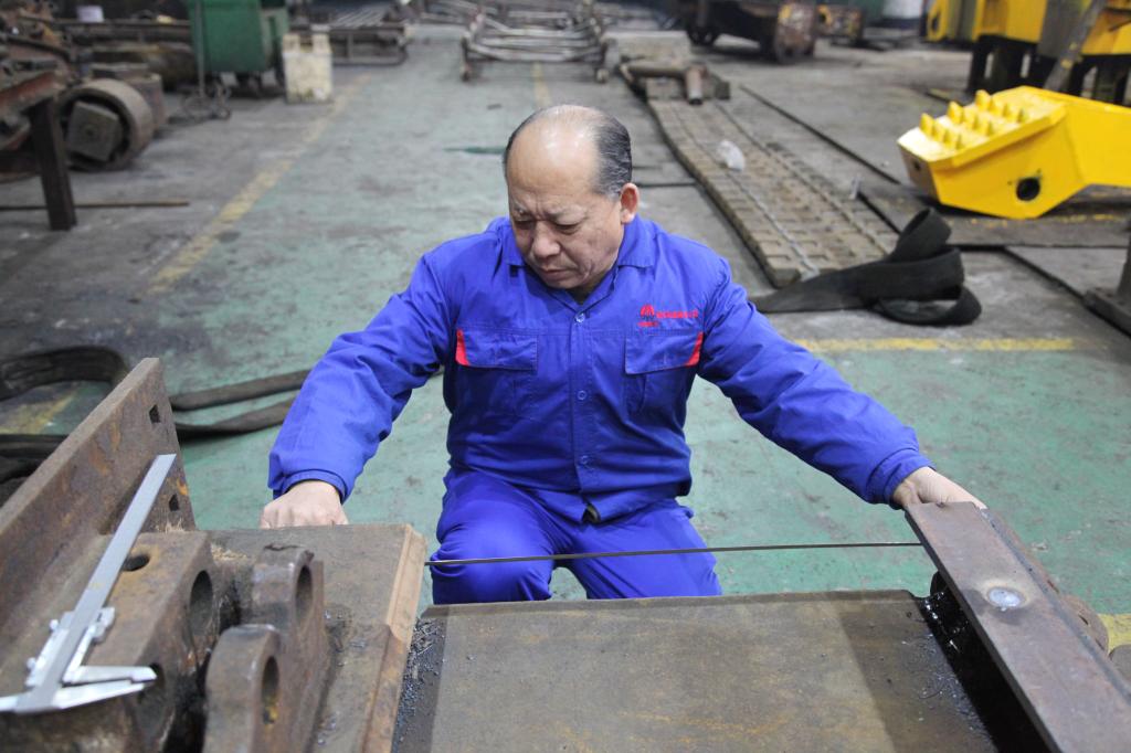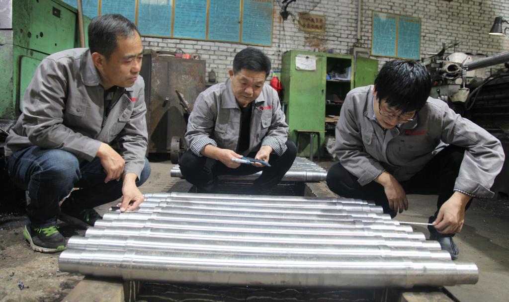 該公司皮帶機(jī)分廠技術(shù)人員正在對(duì)機(jī)械加工件進(jìn)行測(cè)量