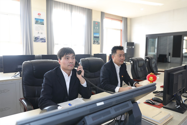 “洗選區(qū),我是調(diào)度室,機器人剛才檢測到4#膠帶巷10架的托輥有問題,安排檢修工去處理”,“調(diào)度室,我是綜采隊王江江,完成安全確認(rèn),請示啟動智能化工作面系統(tǒng)”。作為指揮中樞,信息監(jiān)控調(diào)度指揮中心里面視頻電話鈴聲此起彼伏,依靠智能化系統(tǒng),調(diào)度員樊建峰沉著應(yīng)對。