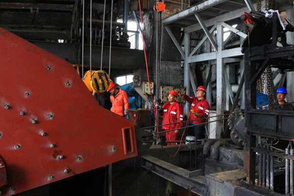 受場地空間限制,拆除的舊件需要運出廠房后,再進(jìn)行新部件的安裝更換。設(shè)備進(jìn)出施工作業(yè)區(qū)困難,安裝精度要求高,立輪無法進(jìn)入排矸車間作業(yè)區(qū),礦分管領(lǐng)導(dǎo)及相關(guān)部門專業(yè)技術(shù)人員與施工方積極對接,研究探討、相互配合,提前打通排矸車間側(cè)墻,清除障礙物,改進(jìn)吊裝方案,作業(yè)現(xiàn)場調(diào)整傾斜角度,在雙方的共同努力下,這個龐然大物順利運輸至安裝位置,大大提高了施工效率。 該項目的順利施工直接影響到礦井的經(jīng)濟(jì)效益,為按期保質(zhì)完成施工任務(wù),該礦各級管理部門負(fù)責(zé)人堅持24小時跟班到作業(yè)現(xiàn)場,全程陪護(hù)式對安全進(jìn)行監(jiān)管,并提出技術(shù)性指導(dǎo)。