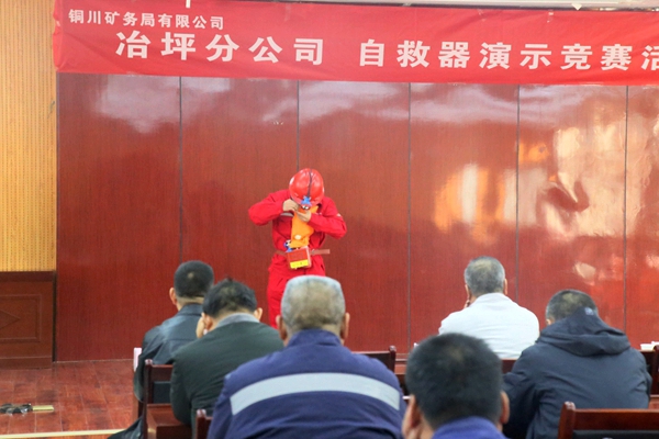 為深入推動“奮戰(zhàn)四季度、決勝‘攻堅年’、全力保安全”活動,近日, 冶坪分公司在機(jī)關(guān)五樓會議室舉辦“自救器使用演練比賽活動”,通過演練比賽提高職工應(yīng)急救災(zāi)能力,激發(fā)廣大干部職工學(xué)習(xí)熱情,增強(qiáng)安全意識,營造人人心系安全生產(chǎn),個個學(xué)習(xí)安全知識,關(guān)注安全,關(guān)愛生命的濃厚氛圍。來自基層單位經(jīng)過層層選拔的15名優(yōu)秀選手一展風(fēng)采。