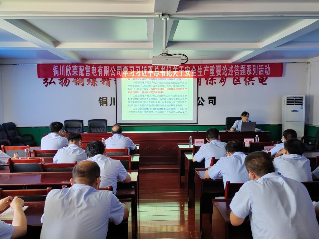 7月6日,欣榮公司組織觀看安全警示教育片、公司領(lǐng)導(dǎo)“安全公開課”講座和習(xí)近平總書記關(guān)于安全生產(chǎn)重要論述答題活動(dòng)。深入學(xué)習(xí)貫徹習(xí)近平總書記關(guān)于安全生產(chǎn)重要論述,進(jìn)一步鞏固安全生產(chǎn)月各項(xiàng)活動(dòng)成果,提升員工的安全生產(chǎn)意識(shí),樹立“兩個(gè)至上”理念,強(qiáng)化安全管理,強(qiáng)化責(zé)任擔(dān)當(dāng),筑牢安全防線。該公司副科級(jí)以上領(lǐng)導(dǎo)干部、公司本部班站長(zhǎng)、安全員40余人參加了會(huì)議。