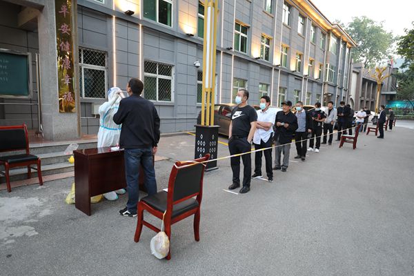 在該礦欣怡廣場,工作人員分兩組為礦區(qū)家屬進行檢測,保安全隊職工和社區(qū)志愿者積極做好幫扶和提醒等工作,醫(yī)院檢測點分段對外圍系統(tǒng)單位進行采樣,確保隨到隨采、減少等候。
