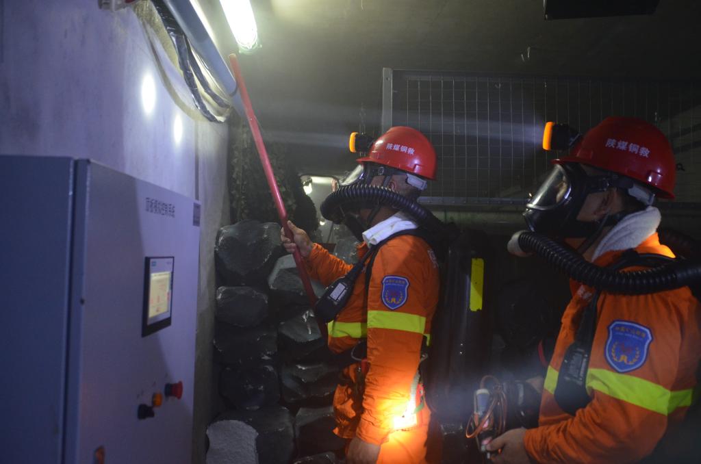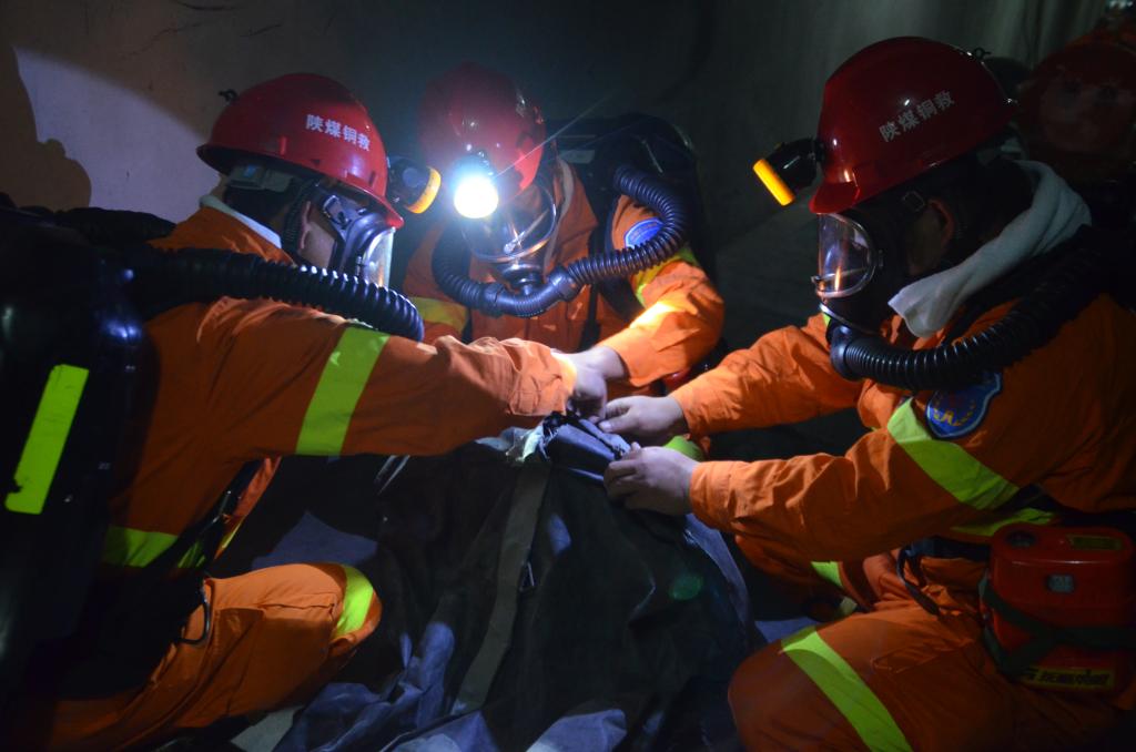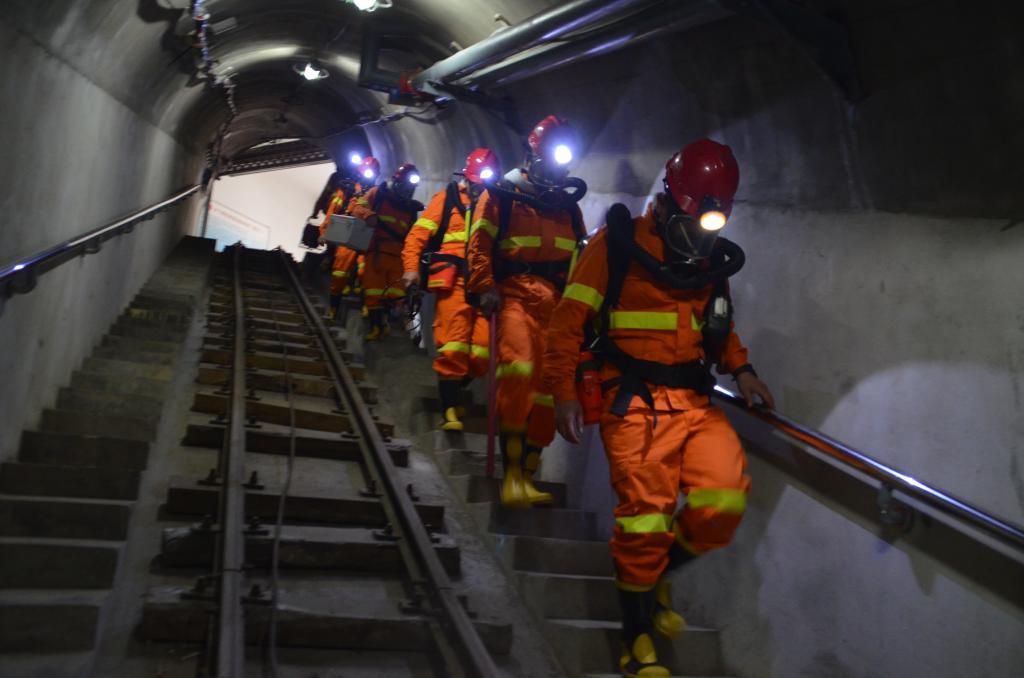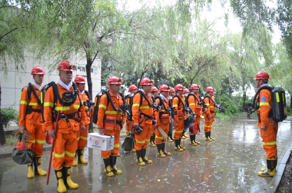近日,救護(hù)大隊(duì)電話值班室接到事故報(bào)警電話,某煤礦掘進(jìn)工作面發(fā)生火災(zāi)造成2人下落不明,請(qǐng)求迅速出動(dòng)救援。隨后,一陣急促的警鈴聲迅速響起,救護(hù)大隊(duì)模擬井下火災(zāi)救援演練火速拉開戰(zhàn)幕。