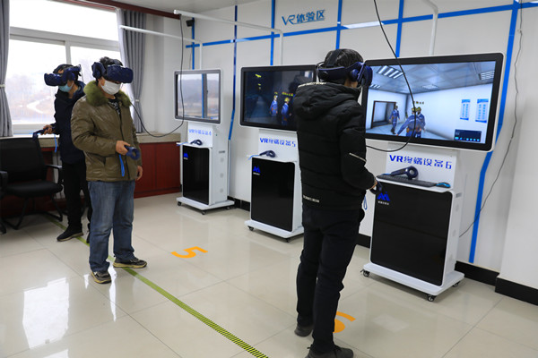 理論課堂上,業(yè)務(wù)科室技術(shù)人員進行授課,重點結(jié)合工作實際與學(xué)員進行互動答疑,提升理論知識水平,并進行閉卷考試,檢驗學(xué)習(xí)成效。 在實操中,學(xué)員走進礦井VR教學(xué)中心,通過為本次培訓(xùn)制作的教材,利用虛擬現(xiàn)實技術(shù),讓大家“身臨其境”感受各類災(zāi)害及生產(chǎn)安全事故的發(fā)生過程和危害性,通過輸入設(shè)備與場景交互,系統(tǒng)對人的行為和工作方案做出對應(yīng)的反饋,檢驗應(yīng)急避險、災(zāi)情處置知識技能和工作水平,系統(tǒng)性、可循環(huán)比照工作方案,提高制定實施災(zāi)害治理方案的全面性和針對性。