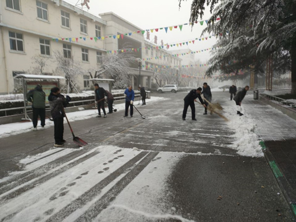 2月9日一大早,該中心組織干部職工積極開展掃雪除冰活動,及時消除安全隱患,保障廣大職工群眾的出行安全。掃雪現(xiàn)場,大家拿起鐵鍬、掃帚等工具,不畏嚴寒、配合默契,連推帶鏟、齊心協(xié)力地投入到積雪的清掃過程中,一個個忙碌的身影在雪白的道路上交錯前行,成了皚皚白雪中最靚麗的風(fēng)景。