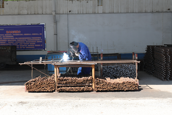 走進(jìn)機(jī)電車間,首先映入眼簾的是鍛工組李根生,只見他一手拿著焊槍、一手拿著面罩,飛濺的焊花在面前四散開來,將一根根錨桿制作成鋼筋網(wǎng)片,為井下巷道支護(hù)提供可靠保障。青年職工李萬超俯身蹲在噴漿機(jī)前,對泵體、轉(zhuǎn)子、轉(zhuǎn)子軸、防爆電動機(jī)等部位進(jìn)行逐一檢查試驗,確保設(shè)備安全可靠運轉(zhuǎn)。電焊工李峰、朱振宏加班加點為礦生活區(qū)、工業(yè)區(qū)加工制作排水溝防洪蓋,確保礦井安全度汛。