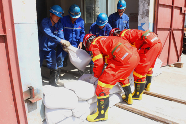 針對(duì)近期礦區(qū)連續(xù)降雨和天氣預(yù)報(bào)信息,為切實(shí)保障安全度汛,礦井組織舉辦汛期“三防”事故應(yīng)急演練,進(jìn)一步提高職工防汛安全意識(shí),全面檢驗(yàn)完善應(yīng)急預(yù)案。