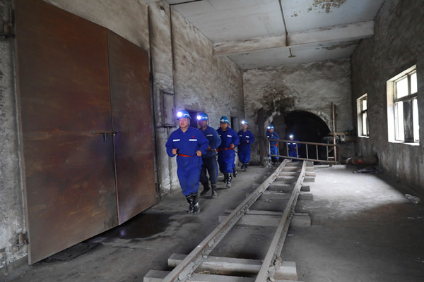 上午10時(shí)整,演練正式開(kāi)始。此次汛期“三防”演練的情景設(shè)定為,在接到市氣象部門(mén)發(fā)布的暴雨橙色預(yù)警信息后,雨勢(shì)不斷加劇,北風(fēng)井工業(yè)廣場(chǎng)積聚水位逐漸抬高,存在大量積水由北斜井灌入井下的風(fēng)險(xiǎn),嚴(yán)重威脅井下作業(yè)人員的安全。信息調(diào)度指揮中心嚴(yán)格執(zhí)行緊急情況停產(chǎn)撤人制度,迅速由帶班礦領(lǐng)導(dǎo)組織井下作業(yè)人員按照避災(zāi)路線緊急撤離。