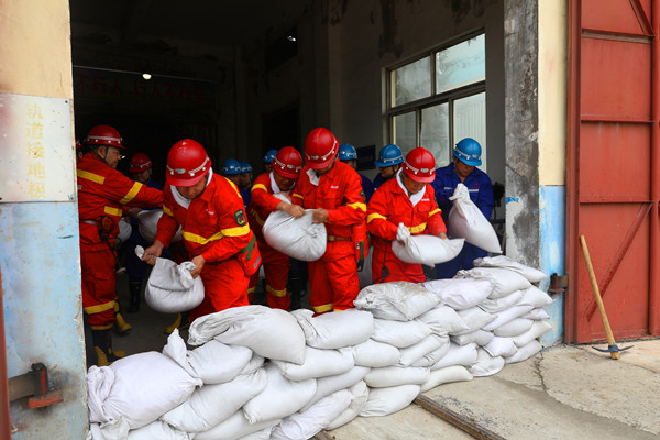 根據(jù)演練設(shè)定模擬險(xiǎn)情,該礦立即啟動(dòng)《汛期“三防”應(yīng)急預(yù)案》,地面指揮部統(tǒng)一指揮協(xié)調(diào)應(yīng)急救援工作??傊笓]發(fā)出集結(jié)指令,10分鐘之內(nèi),防汛應(yīng)急指揮部全體成員集結(jié)完畢,礦防汛搶險(xiǎn)小隊(duì)、駐礦救護(hù)中隊(duì)火速到達(dá)集合點(diǎn),應(yīng)急救援的技術(shù)、安全、醫(yī)療、保障、通訊等小組各自就位。總指揮按照預(yù)案指定各專業(yè)救援小組和防汛搶險(xiǎn)各小隊(duì),立即趕赴災(zāi)情地點(diǎn),實(shí)施應(yīng)急處置。整體應(yīng)急搶險(xiǎn)救援分為兩步驟同時(shí)進(jìn)行,搶險(xiǎn)組出發(fā)趕往北風(fēng)井工業(yè)廣場(chǎng),在北斜井井口使用防汛專庫(kù)物資構(gòu)筑堅(jiān)實(shí)的防水墻,安裝應(yīng)急排水泵、連接排水管等進(jìn)行排水作業(yè),有效防止雨水倒灌。救援組在南風(fēng)井接應(yīng)井下撤離人員,并對(duì)升井人員進(jìn)行清點(diǎn)人數(shù),對(duì)身體不適人員進(jìn)行詢問(wèn)檢查和醫(yī)療救治。經(jīng)過(guò)一個(gè)半小時(shí)的搶險(xiǎn)作業(yè),險(xiǎn)情得到有效處置,圓滿完成此次防汛搶險(xiǎn)演練。