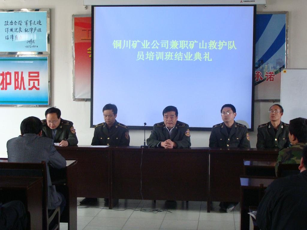 由礦業(yè)公司救護(hù)大隊(duì)主辦的第一期全局兼職礦山救護(hù)隊(duì)員培訓(xùn)班于2010年4月7日上午在救護(hù)大隊(duì)電教室落下帷幕。結(jié)業(yè)儀式由礦業(yè)公司救護(hù)大隊(duì)總工程師段興森主持。大隊(duì)長(zhǎng)劉平治做了總結(jié)講話。