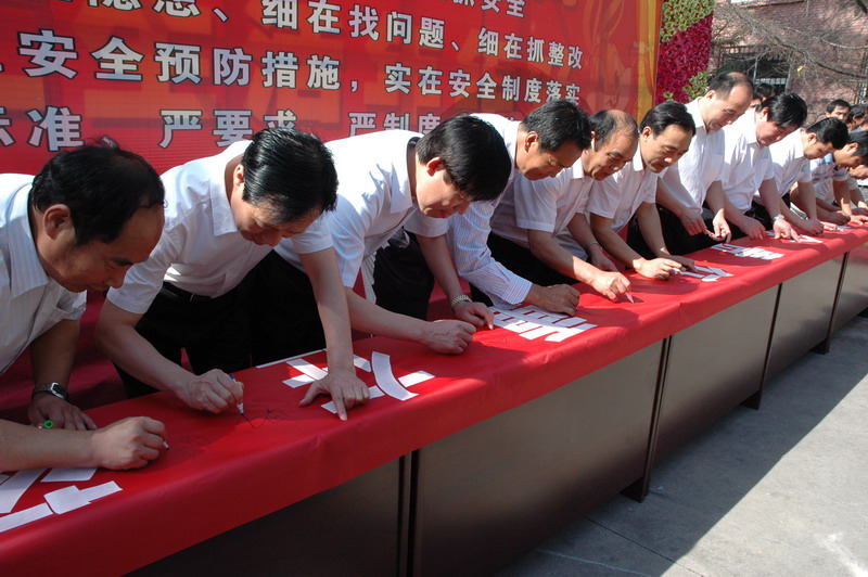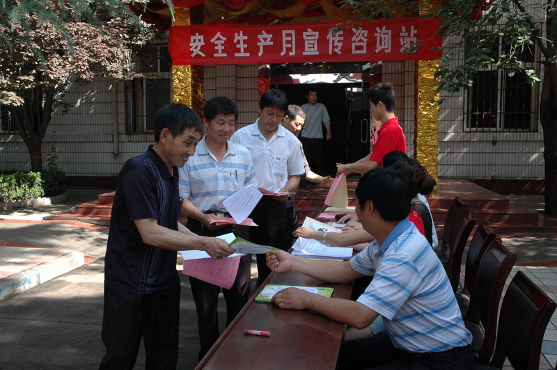 6月12日上午9時,徐家溝礦千余名職工舉行“安全月里我這全”安全承諾簽名活動,礦黨政領(lǐng)導(dǎo)、區(qū)隊管理干部與職工同時在印有“安全責(zé)任、重在落實”的大條幅上寫下自己的名子。礦安質(zhì)科、礦團委組織的安全宣傳咨詢活動同時在礦部大門前展開,安全勸告信、安全寄語、井下安全防范知識、給全礦團員青年的安全倡議書等材料散發(fā)到簽名后的職工手中。徐家溝煤礦開展多種安全系列活動,增強職工安全意識,使安全月里氛圍十分深厚。