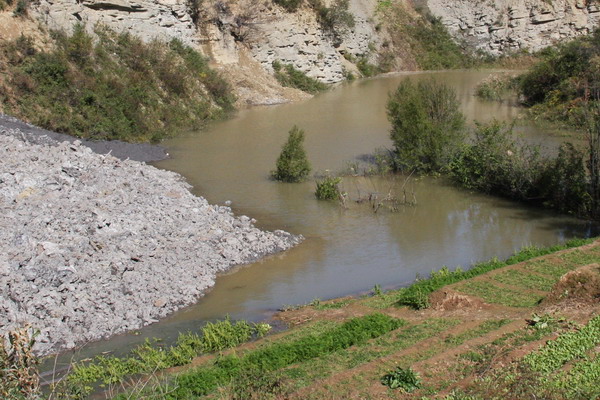由于前期連續(xù)陰雨,10月15日,位于下石節(jié)礦天然氣站西側(cè)山體土石層不堪重負(fù),突發(fā)大面積滑坡,堵塞山下河道,形成兩個(gè)小型“堰塞湖”,造成河道上游四間民房被淹,好在無人員受傷。