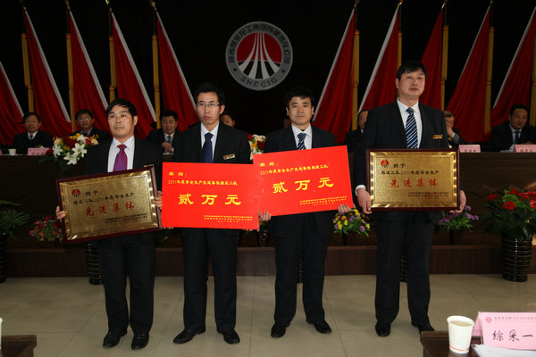 與會人員全體起立高唱《安全歌》,奏響了全礦干部職工在新的一年里,團結(jié)務實,求新思變,敢為人先,實現(xiàn)2012年安全“零”目標的新篇章。《金華山礦關于切實搞好2012年安全生產(chǎn)工作的決定》,明確了2012年安全工作的指導思想、工作目標及思路,強調(diào)了與安全工作相關的安全體系建設及事故調(diào)查處理辦法;修改完善了《2012年安全生產(chǎn)獎懲實施辦法》,出臺了《金華山礦關于實行全員安全風險抵押金的規(guī)定(試行)》;為獲得2011年度安全工作先進集體的綜采二隊,掘進三隊,運輸區(qū)、調(diào)度室等四家單位科室和42名先進個人頒獎。該礦安質(zhì)科、綜掘隊等四家單位代表先后就如何抓好2012年安全工作,堅決實現(xiàn)安全“零”目標表態(tài)發(fā)言。該礦礦長寧文衛(wèi)、黨委書記武永發(fā)現(xiàn)場與各生產(chǎn)輔助單位主要領導簽訂了2012年安全生產(chǎn)目標責任書。會議簡要回顧了2011年安全生產(chǎn)工作,肯定了成績,指出了不足之處。對2012年的安全工作提出了具體要求。一是統(tǒng)一思想,提高認識,堅決實現(xiàn)安全“零”目標;二是健全制度,落實責任,形成安全管理高壓態(tài)勢;三是突出預防為主,構(gòu)筑全方位的安全防范體系;四是抓好安全基礎管理,夯實安全生產(chǎn)基礎;五是加強安全文化建設,實現(xiàn)由制度管理到文化管理的轉(zhuǎn)變;六是抓好質(zhì)量標準化建設,打造安全質(zhì)量標準化精品礦井;七是進一步轉(zhuǎn)變作風,為安全“零”目標提供堅強保證。