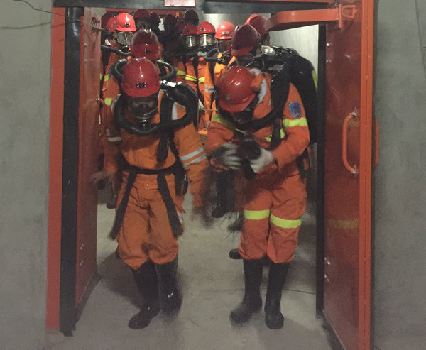 11月15日上午8時50分,一陣急促的警鈴聲響徹整個礦山救護大隊基地,瞬間在樓道、院內(nèi)都能聽到急促的腳步聲,同時不時傳來指揮員下達命令的聲音,值備班車庫門打開,救援車輛啟動,全體指戰(zhàn)員迅速集結(jié)待命,整齊的報數(shù)聲不絕于耳,帶隊指揮介紹事故概況后下達了出發(fā)命令,市區(qū)中隊四輛救護車拉響警笛疾馳而去……其余三個小隊迅速轉(zhuǎn)入值班狀態(tài),戰(zhàn)訓(xùn)、裝備、后勤保障等部門立即進入戰(zhàn)備狀態(tài),做好隨時支援的準備。一次以突發(fā)礦井事故為背景的應(yīng)急救援演練拉開了序幕。