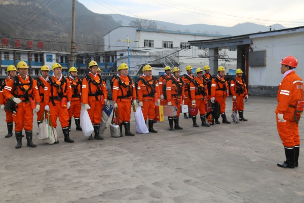 這是陳家山礦開展的“水災(zāi)事故”應(yīng)急預(yù)案演練一幕。