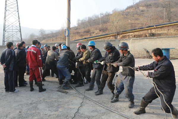 在二廣場(chǎng)工業(yè)廣場(chǎng)上,公司領(lǐng)導(dǎo)和該礦領(lǐng)導(dǎo)一行來(lái)到正在進(jìn)行更換鋼絲繩工作的干部職工中間,看到機(jī)電運(yùn)轉(zhuǎn)隊(duì)和掘進(jìn)一隊(duì)、掘進(jìn)二隊(duì)的廣大干群正熱火朝天、緊密配合的奮戰(zhàn)在更換鋼絲繩的戰(zhàn)斗第一線,主動(dòng)為他們送上慰問(wèn)品。并與奮戰(zhàn)在現(xiàn)場(chǎng)的部室跟班干部、區(qū)隊(duì)干部職工親切交談,詳細(xì)詢問(wèn)了更換鋼絲繩工作進(jìn)展情況,并囑咐大家要時(shí)刻把安全工作放在第一位,認(rèn)真組織好人力物力,細(xì)致做好每道工序,保質(zhì)保量完成工作任務(wù)。在更換的各項(xiàng)工作中,該礦分管領(lǐng)導(dǎo)現(xiàn)場(chǎng)跟班管理,區(qū)隊(duì)干部要認(rèn)真指揮,現(xiàn)場(chǎng)把關(guān)安全質(zhì)量,帶領(lǐng)施工人員嚴(yán)格按照措施要求實(shí)施各項(xiàng)作業(yè),參與更換鋼絲七十多名干部職工協(xié)同作戰(zhàn),充分發(fā)揚(yáng)煤礦工人特別能吃苦、特別能戰(zhàn)斗、特別能奉獻(xiàn)的優(yōu)良作風(fēng),克服人員緊張、施工條件受限、戰(zhàn)線長(zhǎng)等不利因素,緊密配合,在安全的前提下,有條不紊的推進(jìn)工作進(jìn)度,全力以赴掃清運(yùn)輸安全隱患問(wèn)題,保障礦井原煤拉運(yùn)工作不受影響,為礦井安全生產(chǎn)奠定堅(jiān)實(shí)基礎(chǔ)。