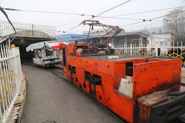 2月13日早上9點(diǎn),在陳家山煤礦井口車場,9輛裝好綜采液壓支架的電機(jī)車整齊地排成一列,猶如一支接受檢閱、即將投入戰(zhàn)斗的裝甲特種部隊(duì)。隨著指揮員一聲指令,一輛輛電機(jī)車頭牽引著裝有液壓支架的平板車緩緩地駛?cè)肫巾暇?,?biāo)志著該礦419綜采工作面支架正式進(jìn)入安裝階段。