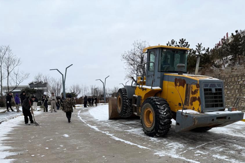 掃雪現(xiàn)場分工明確、協(xié)作有序,一幅同心戰(zhàn)雪的暖心畫面徐徐展開。針對(duì)部分路段積雪較深、人工清掃難度大的問題,公司靈活調(diào)配清掃設(shè)備,采取“機(jī)械開路、人工細(xì)化”的模式,大幅提升了掃雪除冰效率。經(jīng)過數(shù)小時(shí)的連續(xù)奮戰(zhàn),原本被積雪覆蓋的景區(qū)道路、步道、平臺(tái)全部清掃完畢。