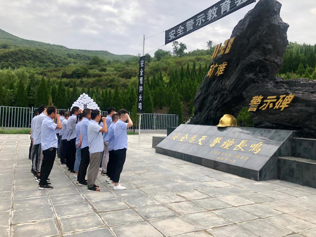 全體人員來到礦難警示碑前,向遇難礦工敬獻(xiàn)花圈,全體人員默然肅立,懷著沉重的心情面向警示紀(jì)念碑默哀,表達(dá)對遇難礦工深切的哀思,并在警示碑前進(jìn)行了莊嚴(yán)的安全宣誓。隨后,全體人員繞紀(jì)念碑一周,緬懷紀(jì)念遇難礦工,汲取安全事故教訓(xùn)。