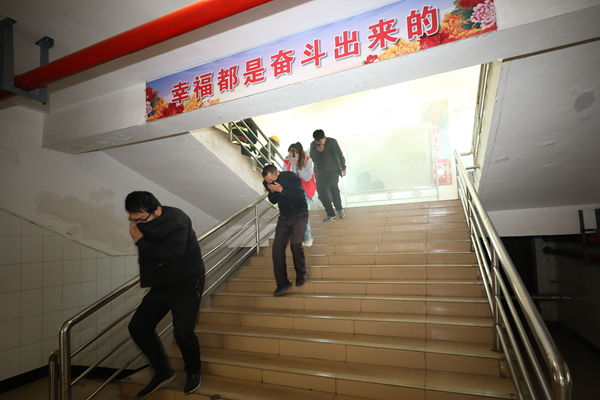 上午9點(diǎn)30分,該礦一號(hào)單身樓內(nèi)突然濃煙四起,火災(zāi)警報(bào)迅速拉響,呼喊撤離的聲音此起彼伏。公司礦山救護(hù)大隊(duì)四中隊(duì)的救護(hù)隊(duì)員沖鋒在前,引導(dǎo)樓內(nèi)職工快速有序逃生,大家一手捂著口鼻、快速?gòu)澭∨?,有序撤離“火災(zāi)現(xiàn)場(chǎng)”。救護(hù)隊(duì)員迅速對(duì)樓內(nèi)火災(zāi)進(jìn)行撲滅,檢查樓內(nèi)人員疏散情況,向總指揮報(bào)告。在演練過程中,火災(zāi)應(yīng)急預(yù)案啟動(dòng),現(xiàn)場(chǎng)指揮組、通訊聯(lián)絡(luò)組、滅火行動(dòng)組、疏散救護(hù)組各司其責(zé),迅速行動(dòng)。