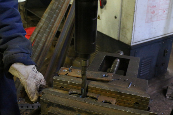 面對(duì)來(lái)自井下作業(yè)現(xiàn)場(chǎng)的改進(jìn)建議,技術(shù)人員深入一線(xiàn)查看施工流程,觀察加工操作過(guò)程,為加工人員創(chuàng)新出一款“平口虎鉗吊片打眼模具”。原理很簡(jiǎn)單,根據(jù)吊掛管路的耗材需求,明確吊片的體積、孔徑規(guī)格,新開(kāi)制作一塊模具,加工人員將模具固定在虎鉗上,跟模切割,打孔、打磨即可完成鑄件。
