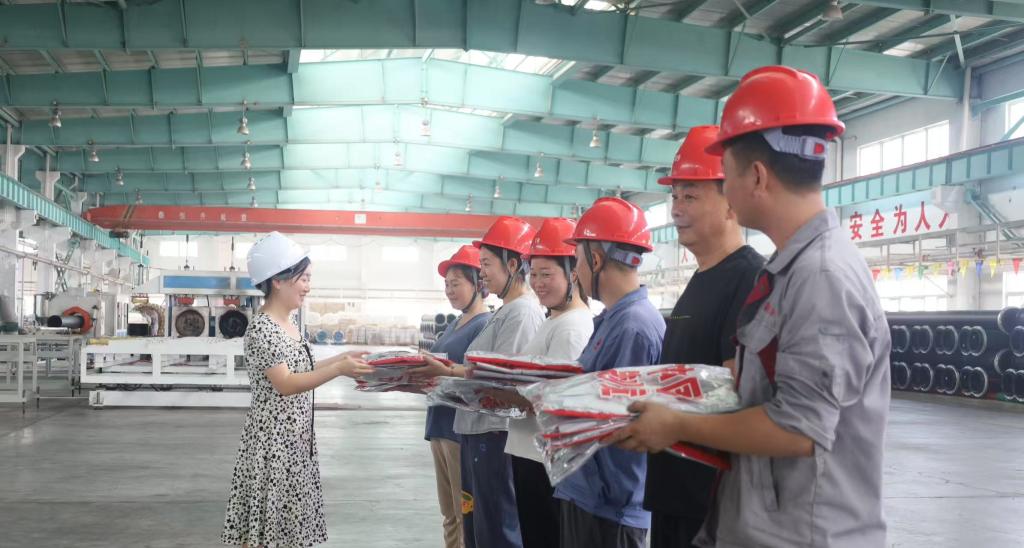 “拿到新工服的那一刻,心里特別高興!”高壓膠管車間王師傅穿上嶄新的夏季工服,臉上露出了滿意的笑容,“之前的春秋工服有點(diǎn)厚,天熱的時(shí)候干活總覺得悶得慌,這新工服又輕又透氣,干活都利索多了?!辈粌H是王師傅,其他職工也紛紛為新工服點(diǎn)贊。