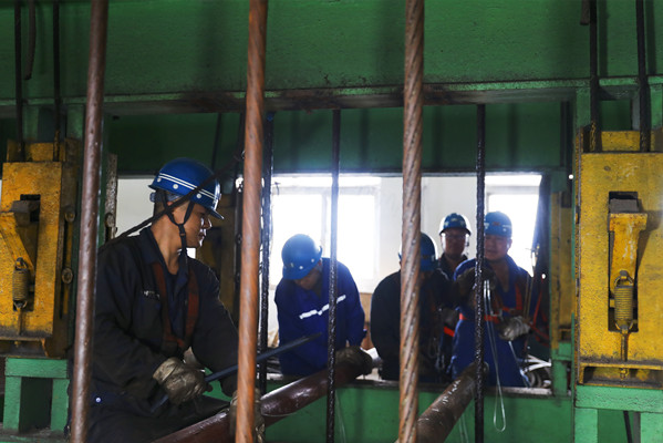 施工過程中,安全管理人員全程緊盯現(xiàn)場,作業(yè)區(qū)域拉設警戒線,井底施工人員在罐籠頂部安裝分繩器,罐籠平穩(wěn)停至指定位置后,搭建鋼梁穩(wěn)固支撐,并借助拉運裝置,應用快速提罐設備,緊密協(xié)同配合,大幅縮短提升時間。在平臺的施工人員精準安裝自動鎖繩裝置,上下實施新、舊繩頭搭接、拆除舊懸掛裝置等操作。業(yè)務部門嚴格按照質量標準要求,做到每道工序、每個環(huán)節(jié)驗收,提供技術指導,確保施工作業(yè)安全有序。