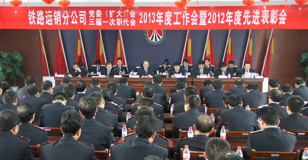 1月23日,鐵路運(yùn)銷(xiāo)分公司黨委(擴(kuò)大)會(huì)、三屆一次職代會(huì)、2013年度工作會(huì)暨2012年度先進(jìn)表彰會(huì)在分公司二樓會(huì)議室勝利召開(kāi),分公司副總以上領(lǐng)導(dǎo)、機(jī)關(guān)部門(mén)負(fù)責(zé)人、基層單位領(lǐng)導(dǎo)、職工代表共計(jì)130余人參加了會(huì)議。