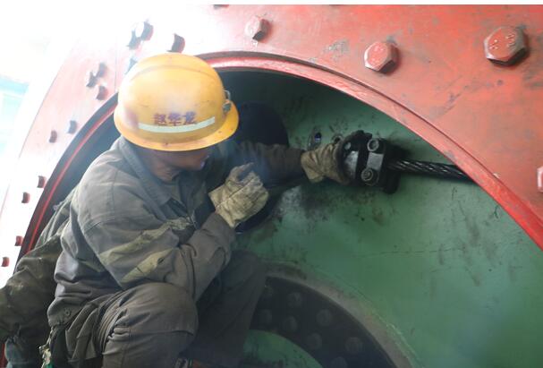 檢修期間,副斜井絞車鋼絲繩倒繩頭作為此次檢修的重點,而制作、冷卻鉤頭又是“關鍵環(huán)節(jié)”,工序多、要求高,從鋼絲繩的收放、纏繞,到鋼絲繩分解、除銹,再到鉤頭的制作、冷卻,該項目部相關領導、部室負責人、區(qū)隊主管書記全程跟蹤現場施工,督促落實安全技術措施,現場指導解決過程中遇到的問題;施工人員每個環(huán)節(jié)協(xié)調作業(yè),密切配合,確保了整個檢修平穩(wěn)推進。12月1日凌晨6點,經過全速運行、緊急制動、半載重載等三次試驗后,新制作的鉤頭牢固可靠,各項運行參數符合要求。至此,所有檢修任務比原計劃提前一個班順利完成,各種機電設備已經安全正常運轉。