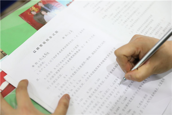 參加本批次“以師帶徒”結(jié)業(yè)理論考試的14名徒弟,包括了綜采支架工、泵站司機(jī)、火區(qū)觀察、機(jī)電管理在內(nèi)的多個工種,其中以培養(yǎng)耗時長、技術(shù)含量高、出師標(biāo)準(zhǔn)嚴(yán)的電工占比為重,自2017年礦井“以師帶徒”升級版模式啟動以來就加入的2名四大機(jī)械、高壓電工學(xué)徒,完成了為期兩年半的拜師學(xué)藝全部課程,迎來了結(jié)業(yè)大考。