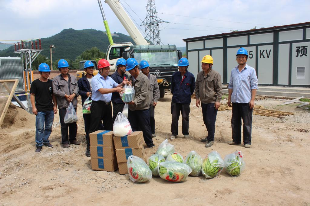 在下石節(jié)35KV無人值守變電站施工現(xiàn)場,該公司領(lǐng)導(dǎo)對正在頂著烈日施工的建設(shè)者和電氣試驗(yàn)工程技術(shù)人員進(jìn)行了慰問,為大家送去了西瓜、綠豆、茶葉、真硒水、風(fēng)油精、藿香正氣水、蚊香等防暑降溫和防蚊蟲叮咬用品,并實(shí)地查看了工程進(jìn)展和現(xiàn)場安全措施落實(shí)情況以及施工人員日常生活情況,叮囑大家在緊張工作的同時(shí),一定要注意安全。
