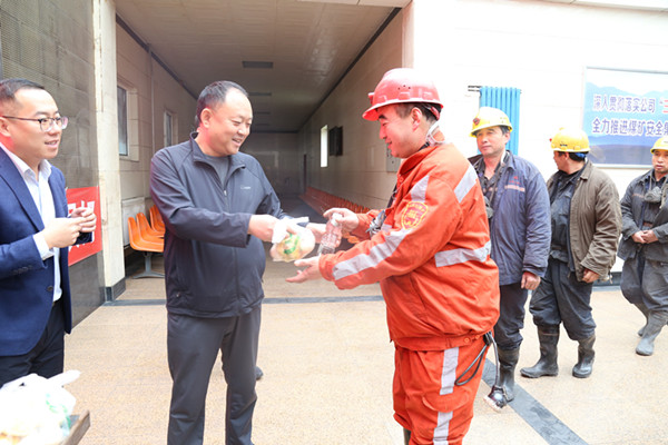 節(jié)日當天上午,該礦井口候車室一片歡聲笑語,充滿著濃濃的節(jié)日氣氛。該礦黨政領導為節(jié)日里依然堅守崗位的一線職工送上自制的月餅、雞蛋、礦泉水等節(jié)日慰問品,并向他們致以節(jié)日的問候,囑咐他們一定要時刻牢記安全,工作中遵章守紀,安全作業(yè)。