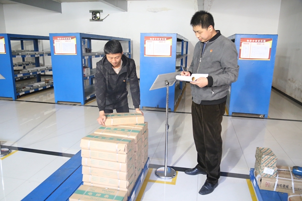 該礦物資超市分為井口物資超市和中心物資超市兩部分,均以井下常用耗材、配件為主要儲存品種,采用“目錄式”管理。要求物資保管要做到要做到“精細(xì)、精準(zhǔn)、精確、精益、精美”,實行“編碼、定置、標(biāo)識、看板”,使庫存物資堆放科學(xué)合理。貨物驗收入庫后,做到“庫號、架號、層號、位號”四定位;物資堆放整齊有序,做到“大的五五成方,高的五五成行,矮的五五成堆,帶角的五五成串”,確?!笆瞻l(fā)、識貨、寫算、報表”,以及賬、卡、物、資金四對口等存放原則。定量裝箱,下墊上蓋,由大到小,存放整齊,過目成數(shù),標(biāo)記鮮明,材質(zhì)不混,品種不錯,規(guī)格不串,上架撥卡,一目了然。物資盤點主要查明物資的數(shù)量與賬、卡是否相符,有無積壓呆滯物資,檢查物資數(shù)量有無變化,保管條件是否良好及庫容整潔等。盤點方式要求全面盤點、臨時盤點和永續(xù)盤點相結(jié)合。物資盤點發(fā)現(xiàn)的盈虧、毀損要按規(guī)定及時處理,并調(diào)整賬務(wù),使賬物一致。