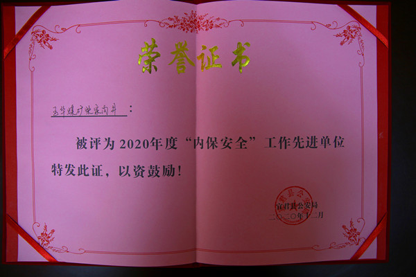 2020年12月31日,宜君縣公安局在局機關(guān)四樓會議室召開“2020年度全縣治安防范表彰大會”,會上對全縣安全工作進行的一次總結(jié)會,對全縣內(nèi)保先進單位進行了表彰獎勵。公司柴家溝井被宜君縣公安局評為2020年度“內(nèi)保安全”工作先進單位。