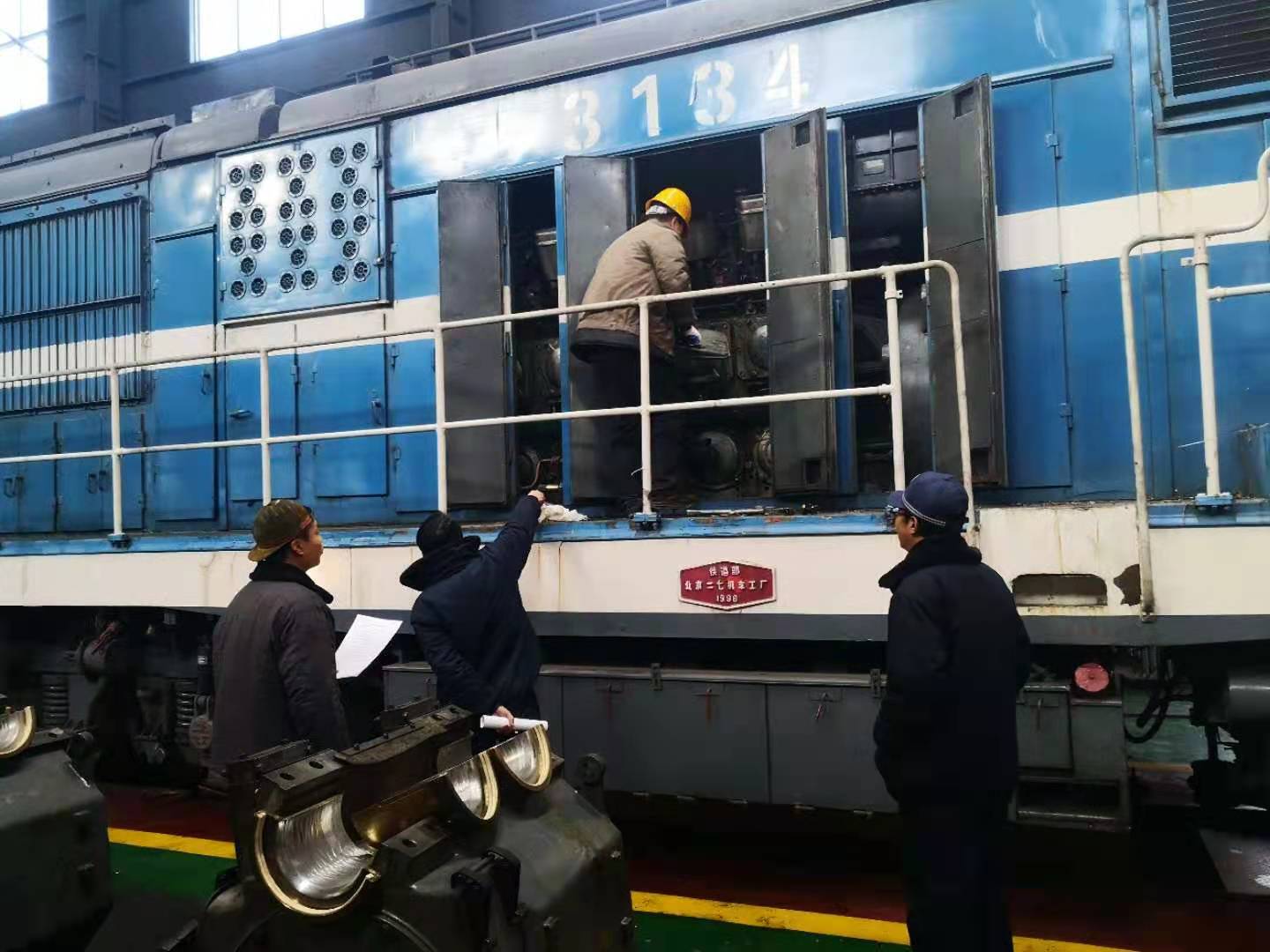 奮力犇忙加油干。“生產(chǎn)進(jìn)行,檢修不止”,機(jī)車維修中心榆橫車間檢修工們正鉚足干勁,熟練的對(duì)每一趟完成運(yùn)輸任務(wù)回來(lái)的機(jī)車進(jìn)行常規(guī)檢查、保養(yǎng)、上油、上砂、處理故障等,特別對(duì)重點(diǎn)部位、關(guān)鍵部件進(jìn)行檢查,同時(shí)對(duì)達(dá)到走行里程數(shù)的機(jī)車要回庫(kù)進(jìn)行全面檢查修整等。他們一手拿著扳手,一手拿著鉗子,時(shí)而鉆入、鉆出,時(shí)而攀上爬下,時(shí)而又下蹲,忙碌地在機(jī)車上精檢細(xì)修,任何一個(gè)小問題都逃不出他們的眼睛。機(jī)車?yán)锩婵臻g特別狹小,操作時(shí)間久了,油污、汗水混合在一起,不知不覺浸透了他們的衣服,當(dāng)看到運(yùn)轉(zhuǎn)恢復(fù)了生產(chǎn)的機(jī)車,他們的臉上露出了欣慰的笑容,繼續(xù)忙碌起來(lái)。