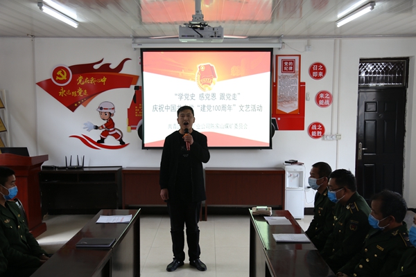 近日,陳家山礦團(tuán)委舉辦的“學(xué)黨史 頌黨恩 跟黨走”慶祝建黨100周年文藝演出下區(qū)隊(duì)第一場在綜采隊(duì)學(xué)習(xí)室拉開帷幕,通過傳承紅色基因,激發(fā)黨員干部不忘初心、牢記使命、愛黨愛國、奮斗前行。