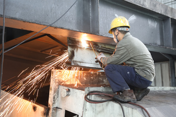 檢修首日,關(guān)鍵項(xiàng)目的主斜井更換膠帶施工中,各支施工隊(duì)伍在井下機(jī)尾硫化平臺(tái)處,采用“快速”更換法,進(jìn)行舊膠帶切割和新舊帶硫化。在接下來(lái)施工中,將利用舊帶牽引新帶完成敷設(shè),截?cái)嗯f帶完成新帶合攏的接頭硫化連接。檢修重點(diǎn)項(xiàng)目的新洗選系統(tǒng)搭接中,1#帶式輸送機(jī)、破碎機(jī)和4#輸送機(jī)機(jī)尾、膠帶,8#輸送機(jī)驅(qū)動(dòng),排矸車(chē)間的立輪排矸機(jī)提升輪和螺旋篩、溜槽等大設(shè)備按照施工方案一一進(jìn)行拆除。