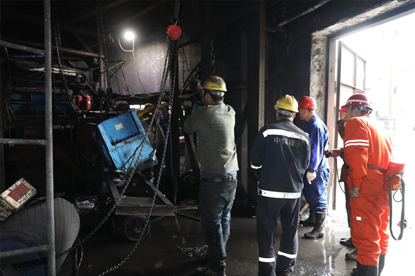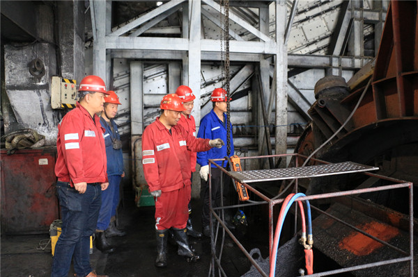 根據(jù)起吊設(shè)備等特殊作業(yè)和平行交叉作業(yè)的實(shí)際,礦井實(shí)行領(lǐng)導(dǎo)干部分片包區(qū)“雙帶班、雙跟班”,安檢員分包項(xiàng)目“陪護(hù)式”專(zhuān)盯,公司駐礦檢修工作小組班班檢查指導(dǎo)的方式,各級(jí)管理人員自檢修開(kāi)始全程跟蹤監(jiān)督施工現(xiàn)場(chǎng)安全管理。礦井檢修領(lǐng)導(dǎo)小組下轄安全、質(zhì)量、供應(yīng)保障、綜合組織等7個(gè)專(zhuān)業(yè)小組成員駐守現(xiàn)場(chǎng),監(jiān)督安全措施落實(shí),對(duì)標(biāo)逐項(xiàng)嚴(yán)控施工質(zhì)量,嚴(yán)明勞動(dòng)紀(jì)律規(guī)范施工工序。施工作業(yè)人員對(duì)照各項(xiàng)目崗位風(fēng)險(xiǎn)提醒卡,消除隱患安全作業(yè)。截止15日下午4時(shí),主斜井新舊膠帶接頭開(kāi)始硫化,洗選系統(tǒng)搭接項(xiàng)目中舊設(shè)備拆除有序進(jìn)行。