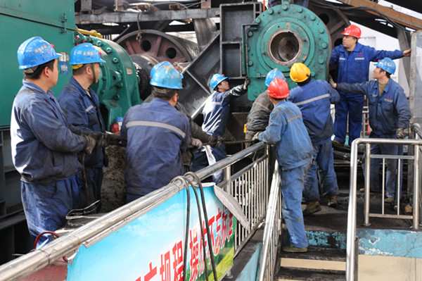 在檢修期間,礦業(yè)公司黨政領導多次深入施工現(xiàn)場調研指導,協(xié)調相關事宜,礦黨政領導班子高度重視公司領導關于檢修工作指示精神,結合礦井實際經過深入調查研究,進一步細化和優(yōu)化檢修工作實施方案。檢修開始后,每班由一名礦領導帶領專業(yè)技術人員現(xiàn)場跟班,落實責任、落實任務、落實安全技術措施,嚴抓施工進度和施工質量,有力推進了檢修工作高效實施。施工單位干部職工克服重重困難,積極投入到主斜井輸送機機頭托帶、1#驅動、1#導向滾筒更換施工當中,堅持做到當班任務當班一次性完成,不干返工活。