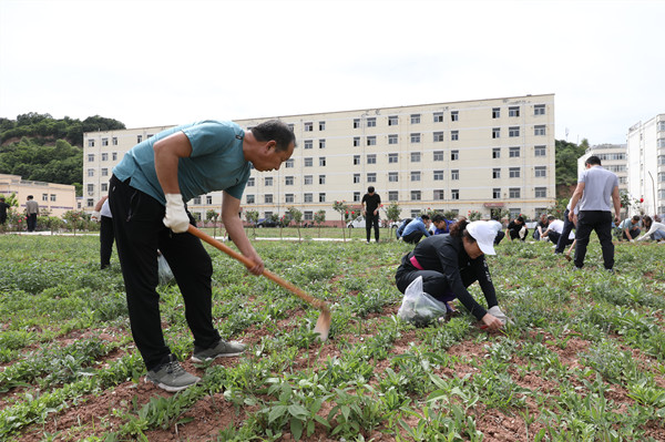 在深入開展黨史學(xué)習(xí)教育,廣泛征集意見建議當中,職工群眾于近期反映北風(fēng)井職工生活區(qū)“三園”內(nèi)雜草增多,影響鮮花果蔬生長。礦井迅速開展調(diào)研,在治理近70畝荒地之后改造“三園”,面臨著管理面積大,除草效率低的實際困難。本著“小事快辦、實事辦好”的原則,立即組織機關(guān)兩個黨支部投入其中。辦好除草小事靚麗生活區(qū),兩個支部決定利用主題黨日等活動,今后定期除草,在勞動中激發(fā)黨員干部職工愛礦愛家情懷,用真情辦好實事,用汗水澆灌果實,用雙手建設(shè)“最美職工生活區(qū)”。