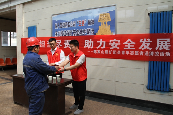 為推進(jìn)黨史學(xué)習(xí)教育走深走實(shí),持續(xù)把“我為群眾辦實(shí)事”實(shí)踐活動(dòng)抓到細(xì)處,近日,陳家山礦團(tuán)委以“安全生產(chǎn)月”活動(dòng)為契機(jī),舉辦“青年擔(dān)當(dāng)盡責(zé) 助力安全發(fā)展”團(tuán)員青年志愿者送清涼活動(dòng),通過(guò)對(duì)奮戰(zhàn)在高溫天氣的干部職工一聲感謝、送一份清涼,把溫暖送到心坎,把安全帶到身邊,推動(dòng)礦井高質(zhì)量發(fā)展。