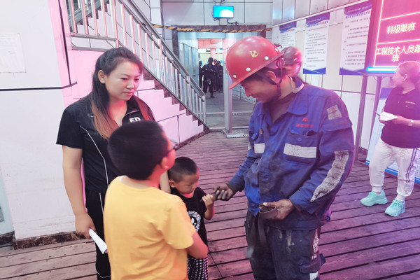 當(dāng)看到職工升井后,家屬們連忙迎上去尋覓自已的親人,有的拉著親人的手久久不肯松開(kāi),有的妻子看著老公略顯疲憊的臉時(shí)心疼的幫忙擦拭臉上灰塵,有的孩子哽咽著說(shuō):“爸爸,您辛苦了,以后我一定好好聽(tīng)話!”一句句深切的表白,一聲聲傾心的呼喊,一個(gè)個(gè)感人的畫(huà)面感染了現(xiàn)場(chǎng)每一個(gè)人。