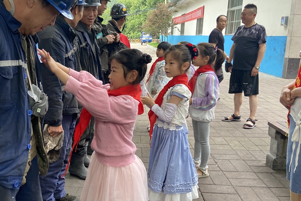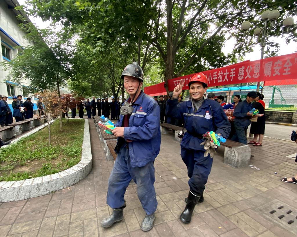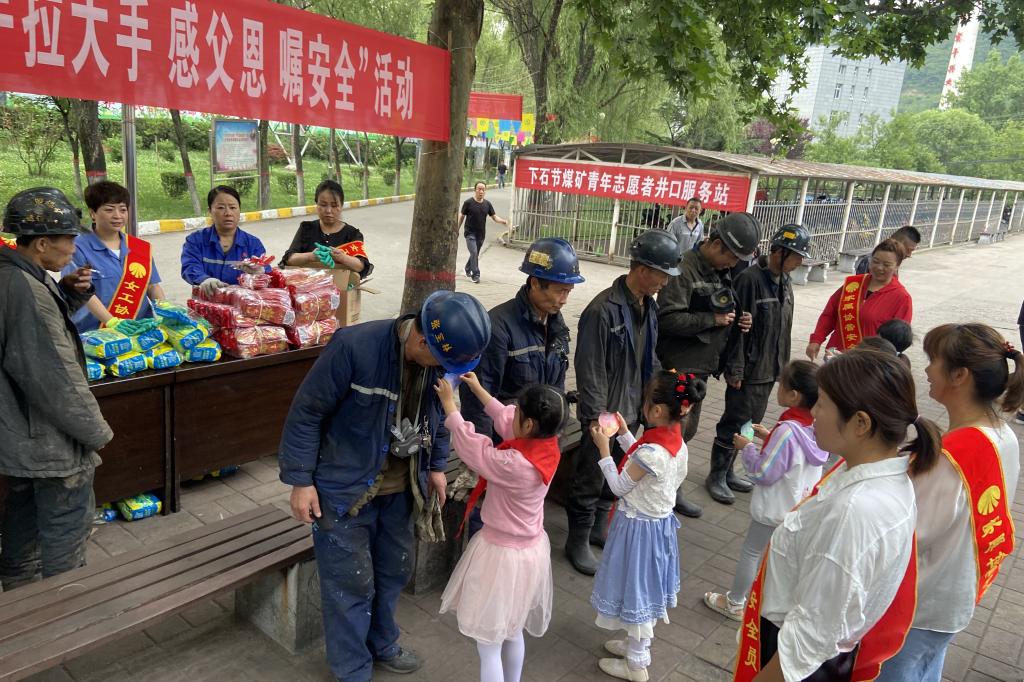 6月20日,在父親節(jié)這個特殊的日子里,下石節(jié)礦的礦嫂們帶著孩子,一大早就來到井口,將提前準備好繡著“平安”二字的鞋墊、洗潔精和滿含愛心的祝福卡送給上下井職工手中,千叮嚀萬囑咐:“爸爸,工作中一定要注意安全,我和媽媽等你平安回家”“老公,你的安全,就是咱們家最大的幸?!薄宦暵曎N心的問候,一句句深情的叮囑,讓礦工們深深地感受到了家人的期盼和親情的溫暖,也在每個即將步入工作崗位的職工心中筑牢了安全第一道防線。