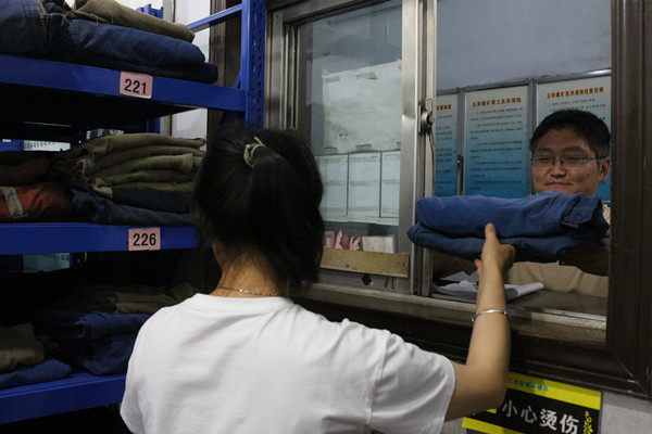 “我們提供24小時免費(fèi)服務(wù),請放心隨時來”,“褲邊已經(jīng)縫好了,您在看看合適嗎?”,玉華煤礦職工洗衣中心里,一句句關(guān)心話語,一聲聲親切問候,猶如微風(fēng)拂面,為職工送來夏日關(guān)愛。