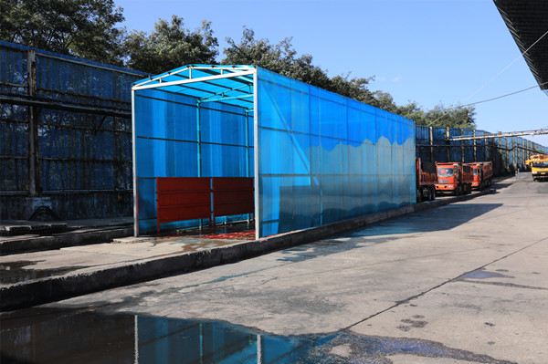 該礦堅定踐行生態(tài)文明理念,持續(xù)加大環(huán)境保護(hù)基礎(chǔ)設(shè)施建設(shè)投入,按照降低揚(yáng)塵環(huán)保標(biāo)準(zhǔn)要求,礦井聯(lián)合環(huán)??萍脊就度虢偃f元對洗車臺進(jìn)行第三次升級改造。此沖洗裝置由5組洗車臺組成,每組配套1臺強(qiáng)力水泵使單泵流量可達(dá)到45m3/h,電控系統(tǒng)采取自動、手動與遙控控制等多種工作模式。車輛駛?cè)肫脚_后實現(xiàn)無人值守全程自動化沖洗,亦能實現(xiàn)每組設(shè)備單獨(dú)控制,提供立體式全包圍的強(qiáng)勁沖洗力,將車輛貨箱、輪胎及底部等整體沖洗干凈。 洗車臺外部建有鋼架結(jié)構(gòu)透光防塵降噪棚,隔絕洗車時噪音和沖洗揚(yáng)塵,平臺周圍建有隔離堤、排水溝,將污水全部收集進(jìn)入污水處理站,進(jìn)行凈化和循環(huán)利用,節(jié)約資源保護(hù)礦區(qū)水源。日常管理運(yùn)行由銷售部門嚴(yán)格把關(guān),出廠車輛經(jīng)過洗車臺沖洗干凈后方能駛出。