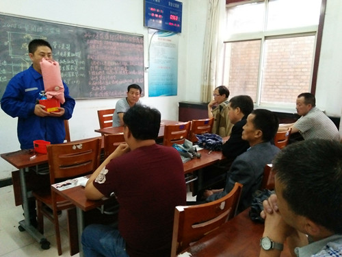 該礦組織自救器維修管理人員每天利用班前會時間,深入基層區(qū)隊向干部職工詳細講解佩戴自救器的重要性和原理構(gòu)造,以及ZYX隔絕式壓縮氧自救器使用方法。同時,要求每名職工進行現(xiàn)場操作佩戴,保證人人能夠準確熟練的使用自救器,達到全員培訓(xùn),個個過關(guān)的目的。使職工深刻認識到自救器不再是掛在身上的負擔,而是危急時刻的“生命保護傘”,在遇有突發(fā)情況時,能在最短時間內(nèi)進行佩戴自救,以達到快速逃生的目的,保護職工生命安全。