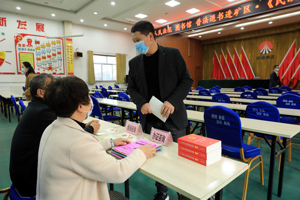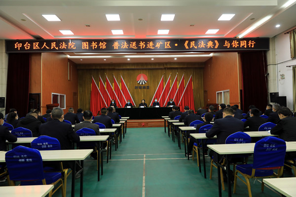 11月5日下午,印臺(tái)區(qū)人民法院副院長(zhǎng)梁艷,印臺(tái)區(qū)圖書館副館長(zhǎng)牛萬(wàn)倉(cāng),印臺(tái)新街法庭庭長(zhǎng)宋斌帶領(lǐng)相關(guān)部門人員一行走進(jìn)玉華煤礦,開展普法送書進(jìn)礦區(qū)《民法典》與你同行活動(dòng)。該礦干部職工在職工活動(dòng)中心聆聽普法宣講。