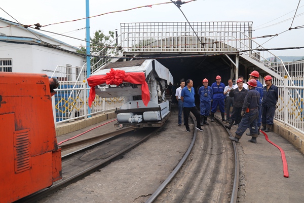 6月21日上午,陳家山礦井口工業(yè)廣場軌道運輸線旁,礦領(lǐng)導(dǎo)及相關(guān)科室、基層區(qū)隊負責人一起參加了427工作面首臺液壓支架入井儀式。在電機車頭的牽引下,首臺支架披戴紅花,緩緩駛?cè)刖?,標志?27工作面支架安裝工作正式拉開序幕。